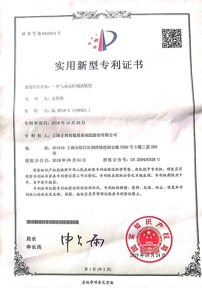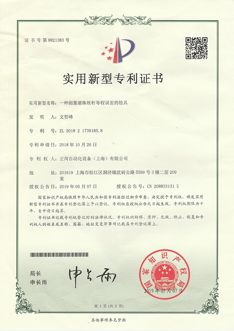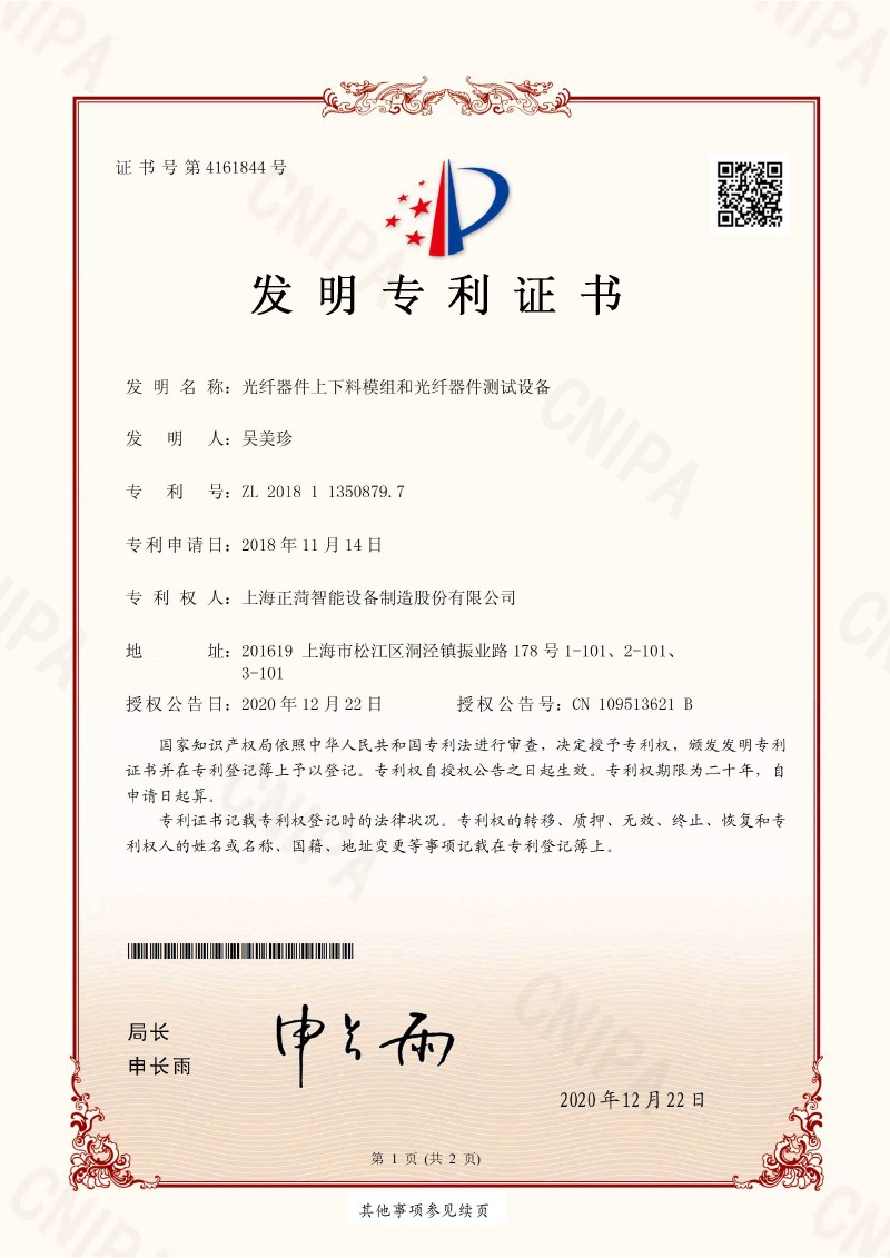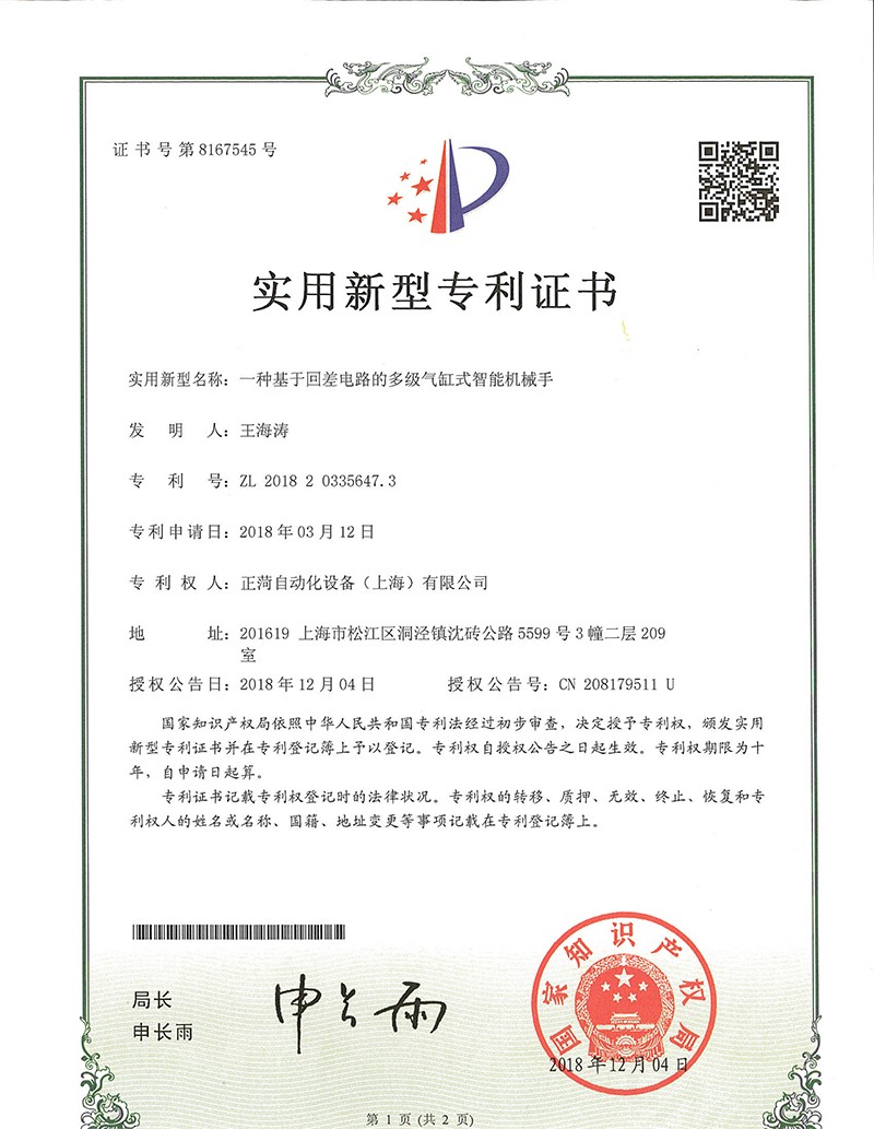 装盒三轴机械手-发明专利证书(...